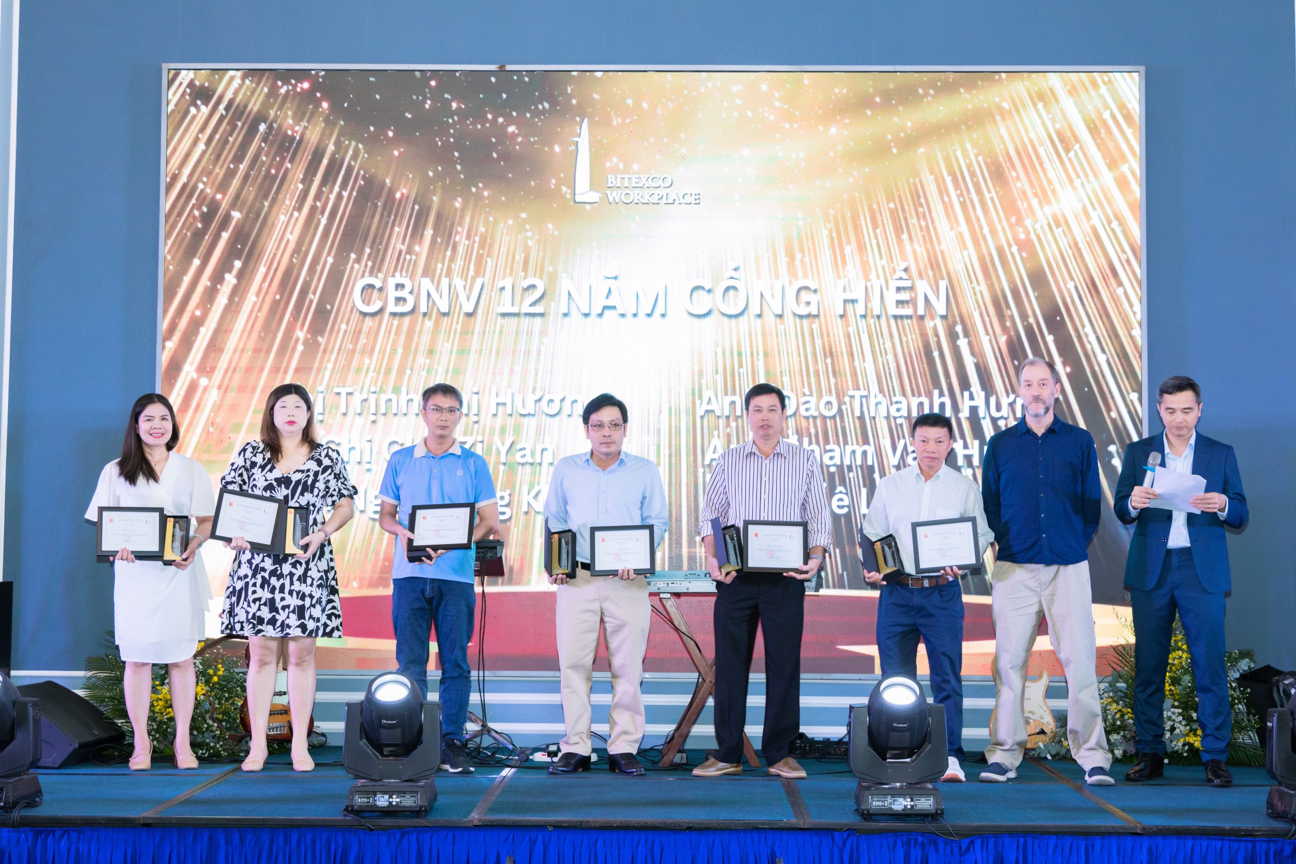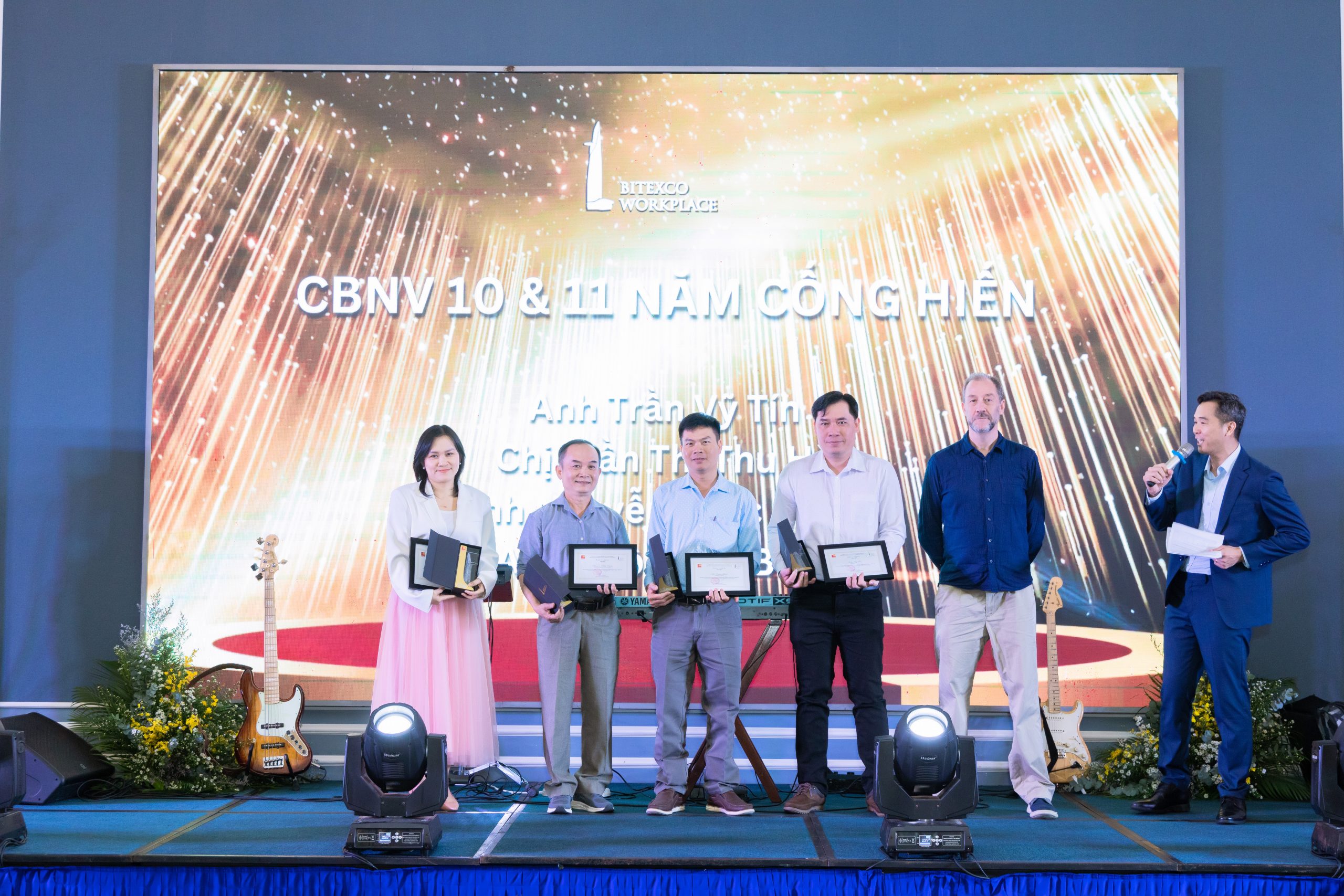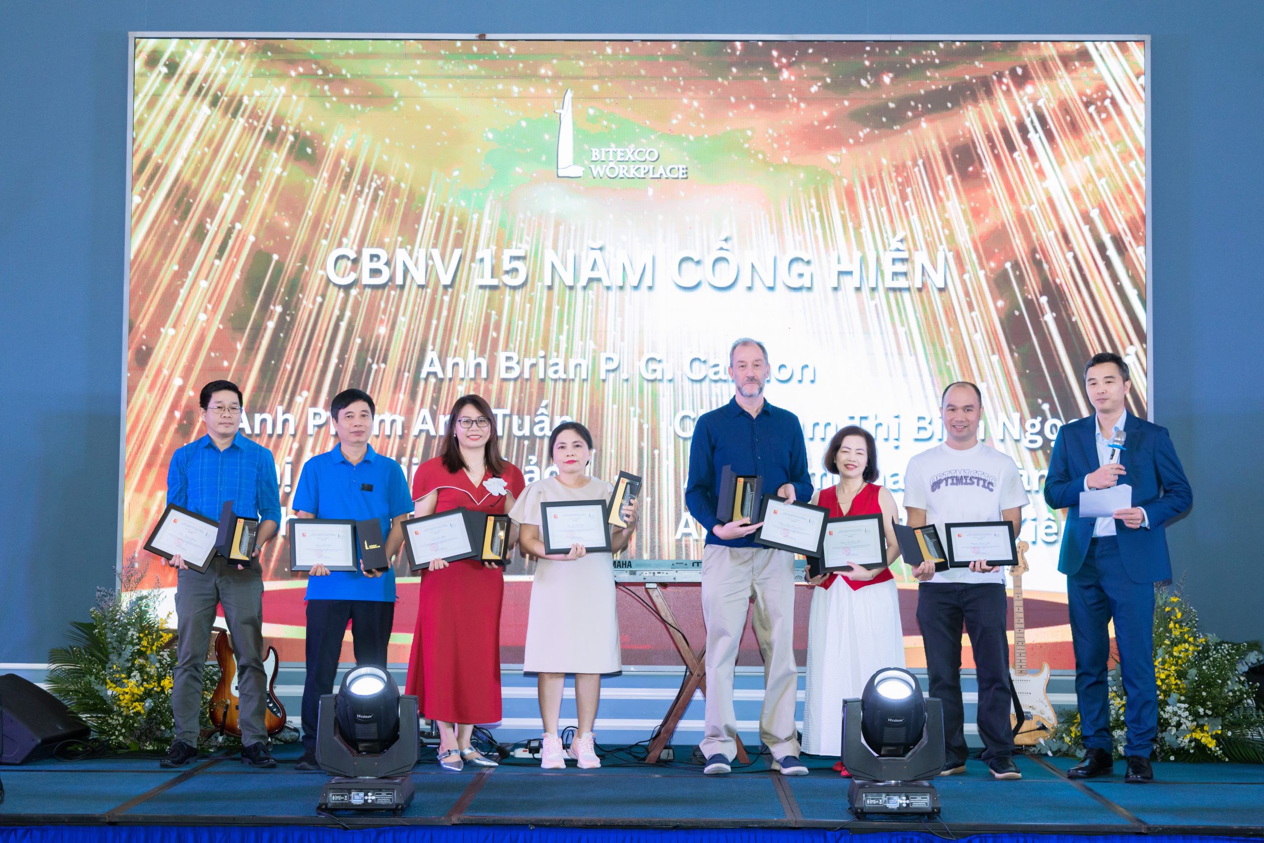 Đồng thời, BTC cũng đã thực hiện lễ vinh danh và tri ân các cán bộ nhân viên có thời gian công tác từ 5 năm đến hơn 15 năm tại BWP – những con người đã luôn gắn bó, tận tụy và đóng góp không ngừng nghỉ trong việc duy trì và phát triển giá trị biểu tượng của Bitexco Financial Tower suốt 15 năm qua.