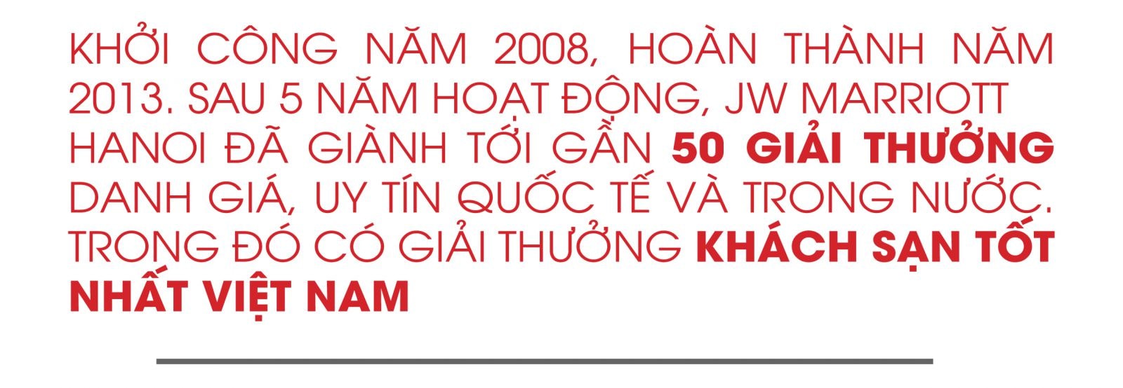 Như vậy, cùng Bitexco Financial Tower với hình dáng búp sen sừng sững vươn lên giữa trời cao, khách sạn 5 sao sang trọng bậc nhất JW Marriott Hanoi như chú Rồng oai phong đang bay lên bên bờ biển Đông không chỉ là công trình biểu tượng của Việt Nam mà đã trở thành điểm thu hút bạn bè quốc tế bằng những giải thưởng và bình chọn uy tín toàn cầu.