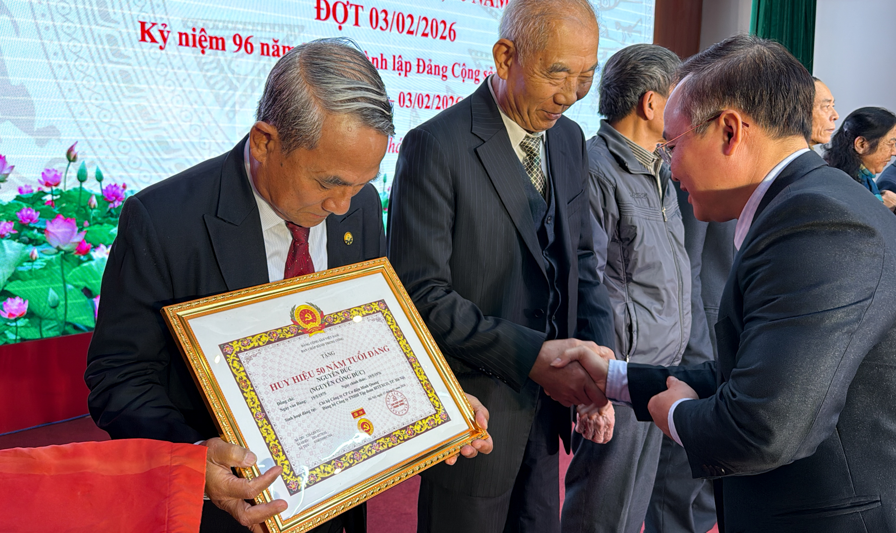 Trong đợt trao tặng này, Đảng bộ Bitexco có 2 đồng chí được nhận Huy hiệu 50 năm tuổi Đảng: Đồng chí Nguyễn Đức – Huy hiệu 50 năm tuổi Đảng, sinh hoạt tại Chi bộ Minh Quang và đồng chí Phí Thái Bình – Huy hiệu 50 năm tuổi Đảng, sinh hoạt tại Chi bộ Đông Dương Telecom.