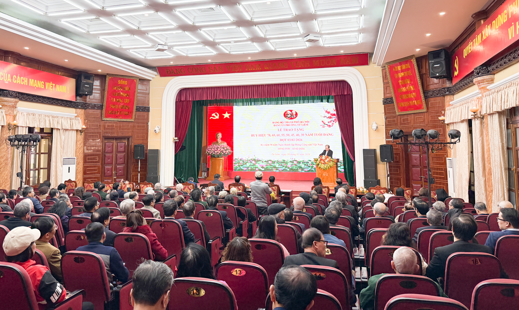 Lễ trao tặng Huy hiệu Đảng được tổ chức chức trọng thể vào hồi 08h00 ngày 30/01/2026, tại Hội trường Đảng uỷ – UBND phường Từ Liêm, số 127 Hồ Tùng Mậu, Hà Nội.