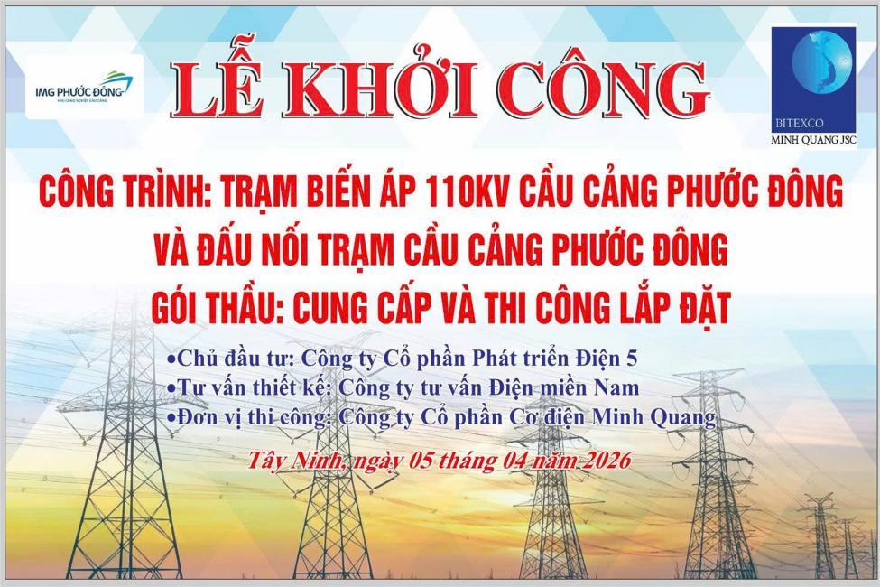 Ngày 05/4/2026, dự án Trạm biến áp 110kV Cầu cảng Phước Đông và đấu nối trạm Cầu cảng Phước Đông đã chính thức được khởi công, đánh dấu bước khởi đầu quan trọng trong việc phát triển hạ tầng điện phục vụ khu công nghiệp và khu vực lân cận trên địa bàn tỉnh Tây Ninh.